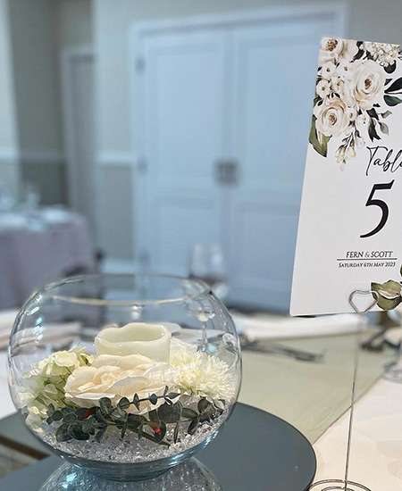 We have a large range of centre pieces available to view in our showroom and are always adding to that collection.