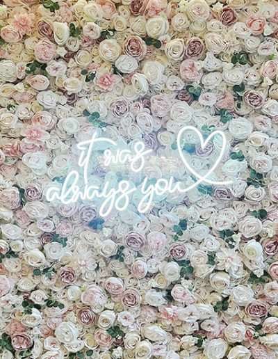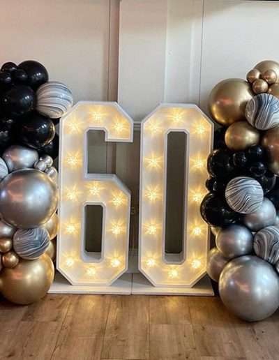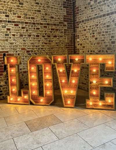 We have two gorgeous sets of rustic love letters, a giant retro cinematic light box, white LED numbers and a range of neon signs to help personalise your event!